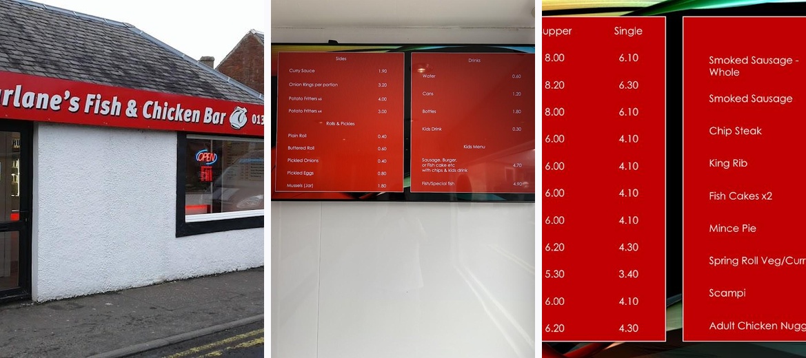 McFarlane's Fish and Chicken Bar serves up delicious, freshly prepared takeaway food that captures the essence of classic British fish and chips. Located at 4 Waggon Rd in Falkirk, this eatery is a local gem known for its crisp batter and flavorful ingredients. The menu features a variety of options, from perfectly cooked fish to succulent chicken, all prepared in a casual atmosphere that is welcoming for tourists and locals alike. With a price range that makes it accessible to everyone, McFarlane's is ideal for lunch or dinner, late-night snacks, or a quick bite after exploring the area.